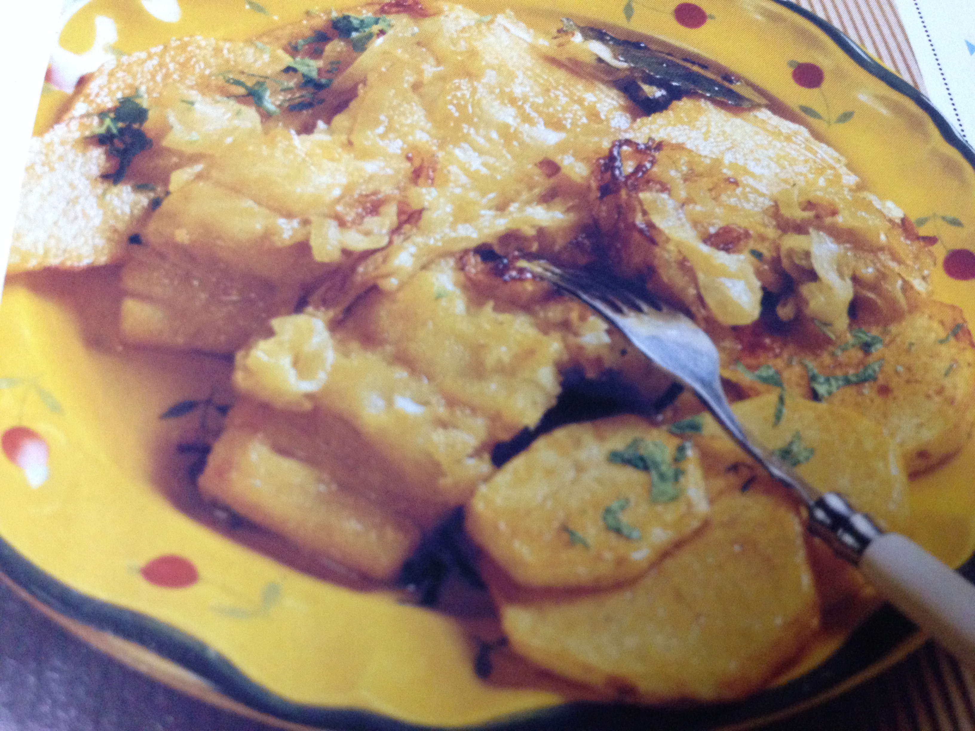 </p><p>Enxugue, depois o bacalhau e frite-o no azeite quente, de ambos os lados. Retire-o e coloque-o num prato de serviço.