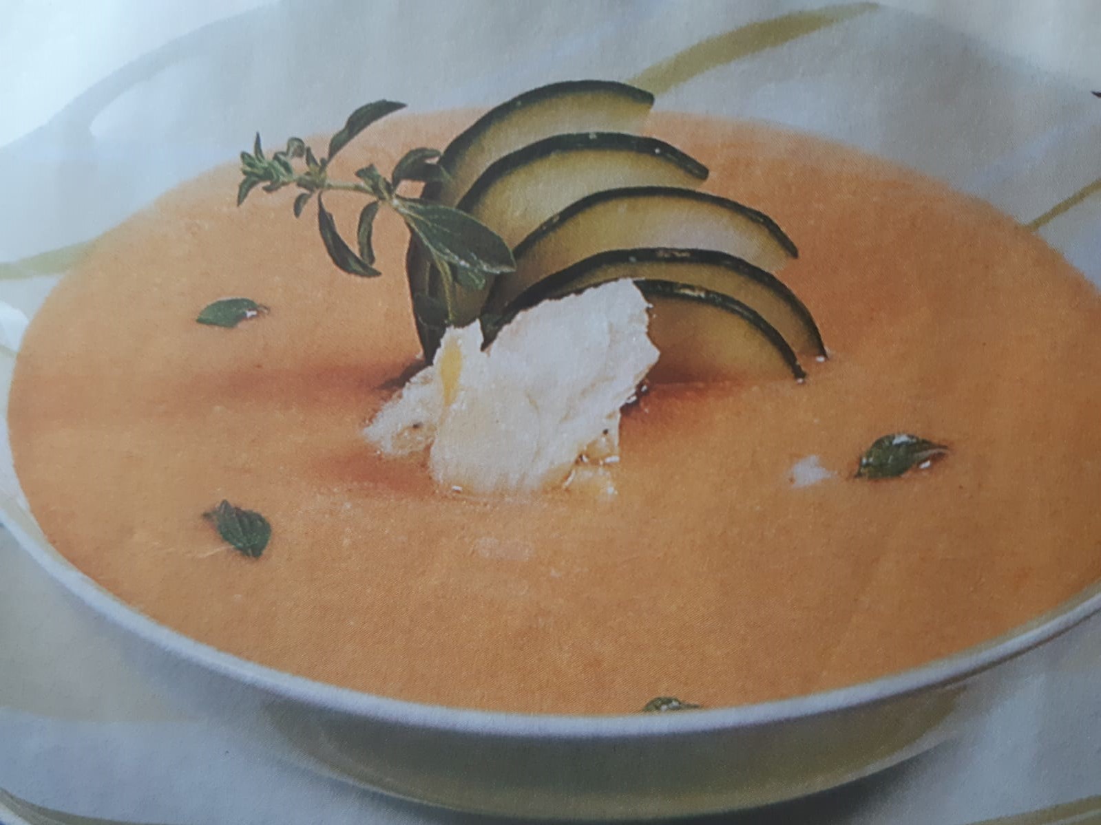 </p><p>Acrescente as lascas de bacalhau e decore com o restante pepino e as folhas de poejo.</p>