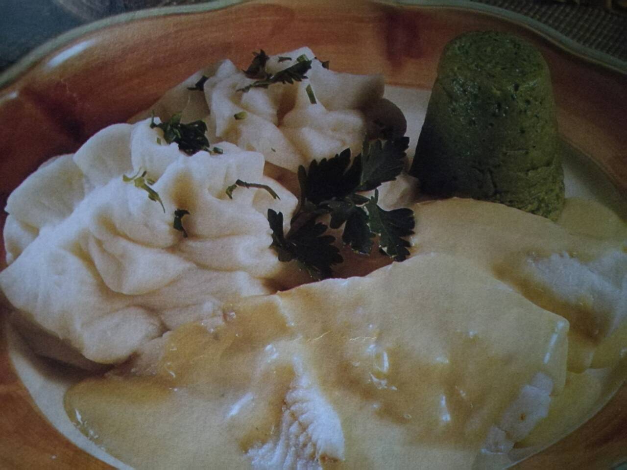 <p>Comece por temperar os filetes, com sal e sumo de limão. Coloque-os num tabuleiro, cubra-os com 1.5 dl de leite e leve ao forno, durante cerca de 15 minutos. Tape o tabuleiro com papel de alumínio. Arranje os brócolos e coza-os em água e sal. Descasque as batatas e coza-as. Depois de cozidas, reduza-as a puré e ligue com o leite, (onde cozeu os filetes) a manteiga e duas gemas. Tempere com sal, pimenta e noz-moscada.