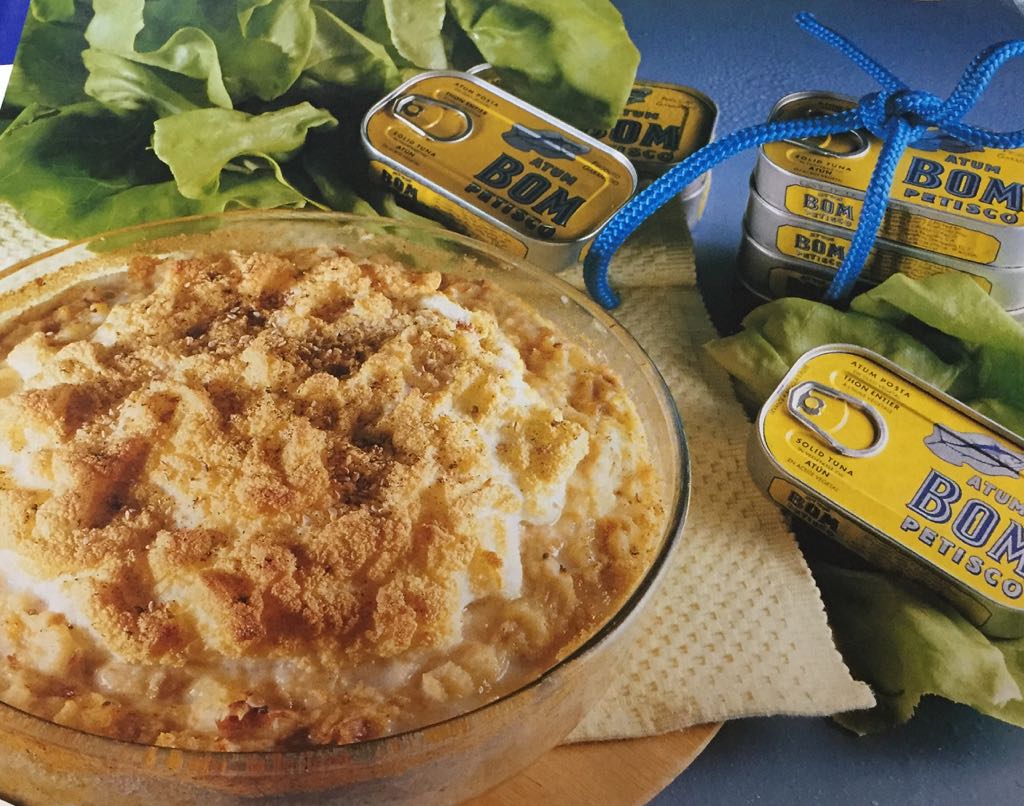 </p><p>Á parte, dilua a farinha no leite e verta, em frio, ao preparado de atum. Tempere com noz-moscada, sal e pimenta.