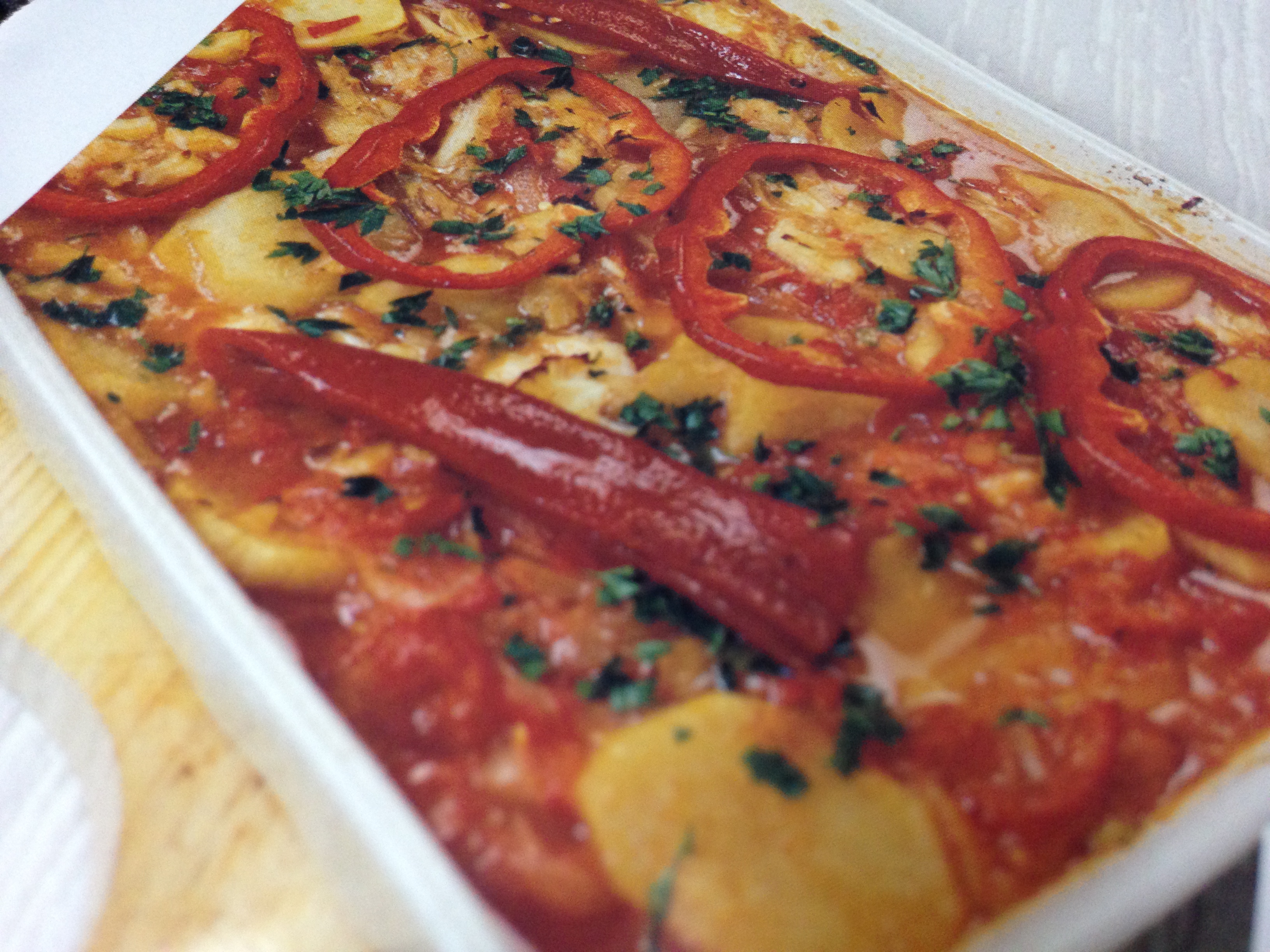</p><p>Coloque por cima o pimento, cortado em rodelas e uma ou 2 malaguetas (facultativo). Leve a forno forte a 200ºC, até alourar. Sirva polvilhado com salsa picada.</p>