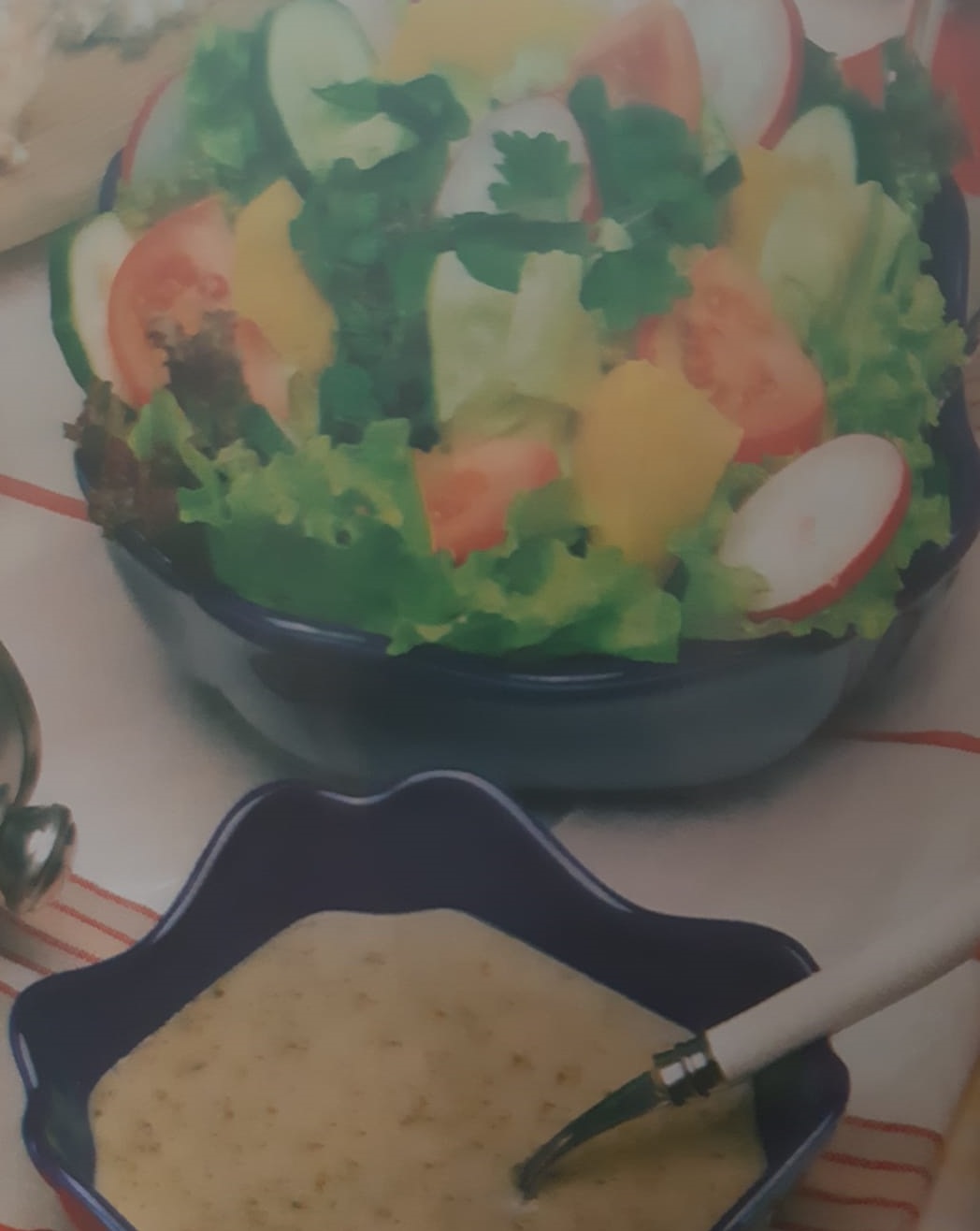 </p><p>Prepare o molho, colocando num copo misturador o azeite, o vinagre, os coentros picados e a mostarda.