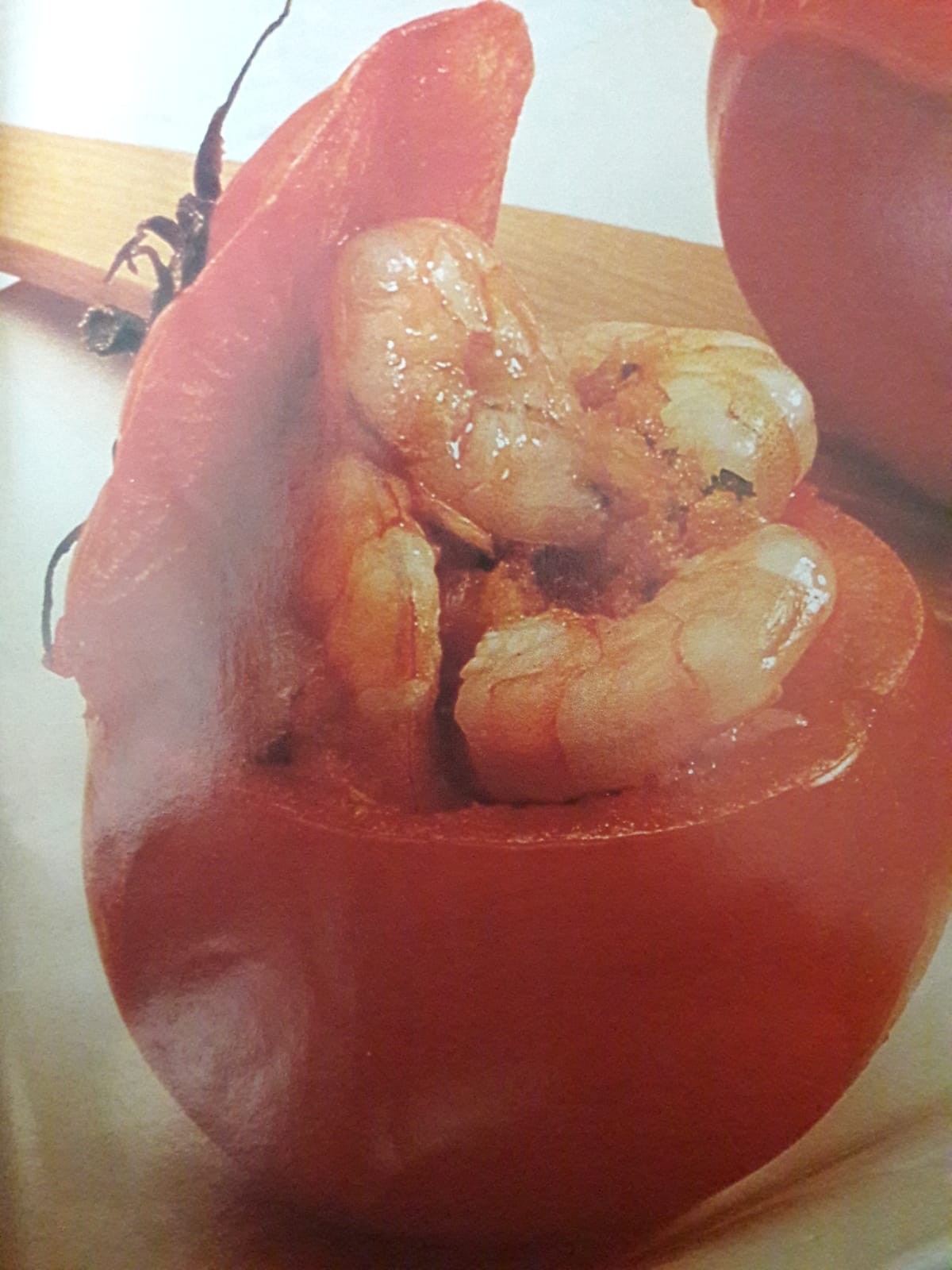 </p><p>Retire do microondas, adicione-lhes o pão ralado, a polpa de tomate, a salsa picada e os camarões cozidos, tempere com sal e pimenta e misture bem.