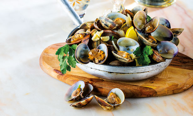 </p><p>Depois, adicione as ameijoas e uma boa pitada de sal e deixe fritar um pouco mas até começarem a abrir.