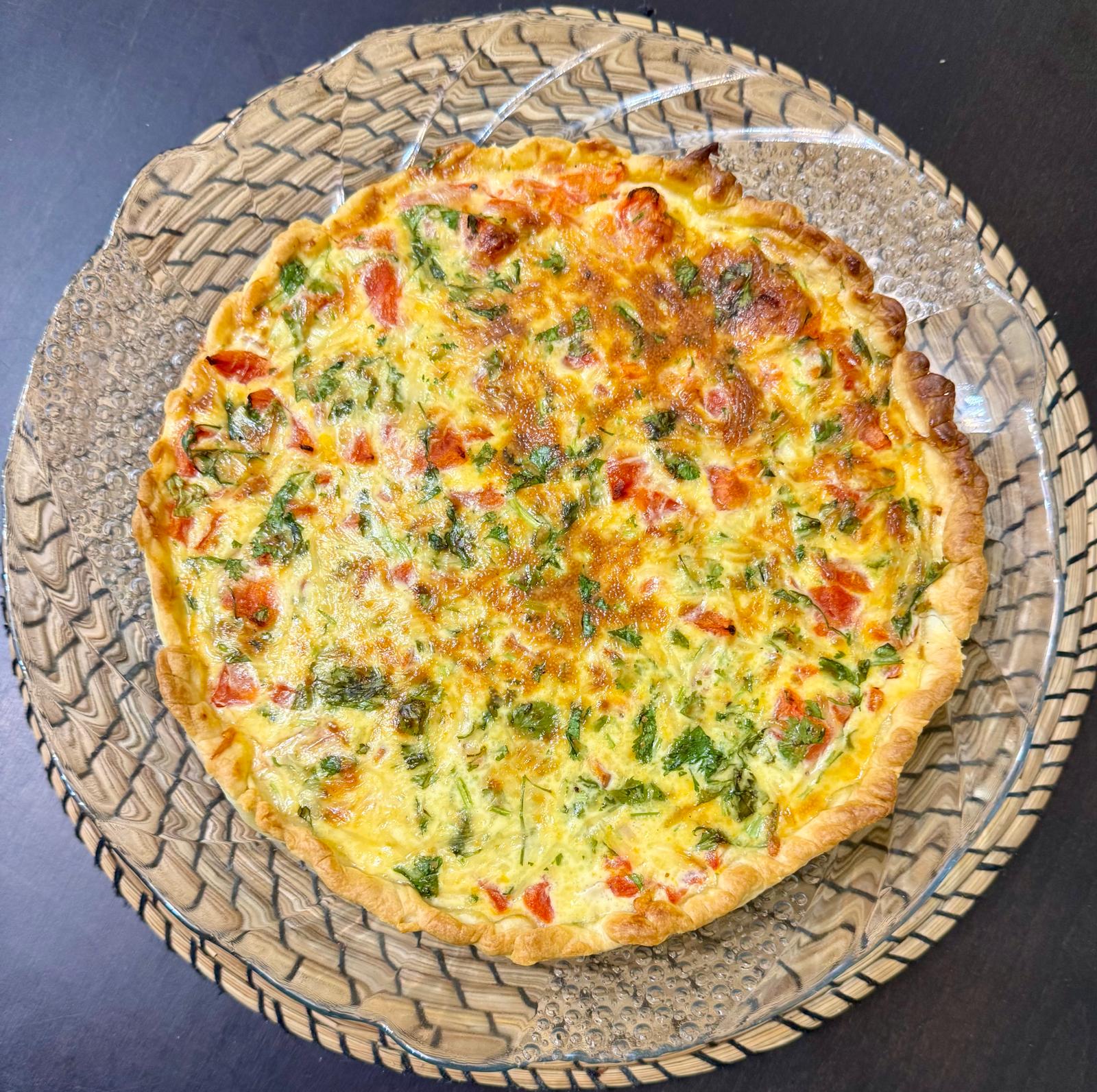 - Tempere com sal e pimenta e deite na tarte. Leve ao forno 10 minutos, reduza o calor para 180° C e deixe acabar de cozinhar.