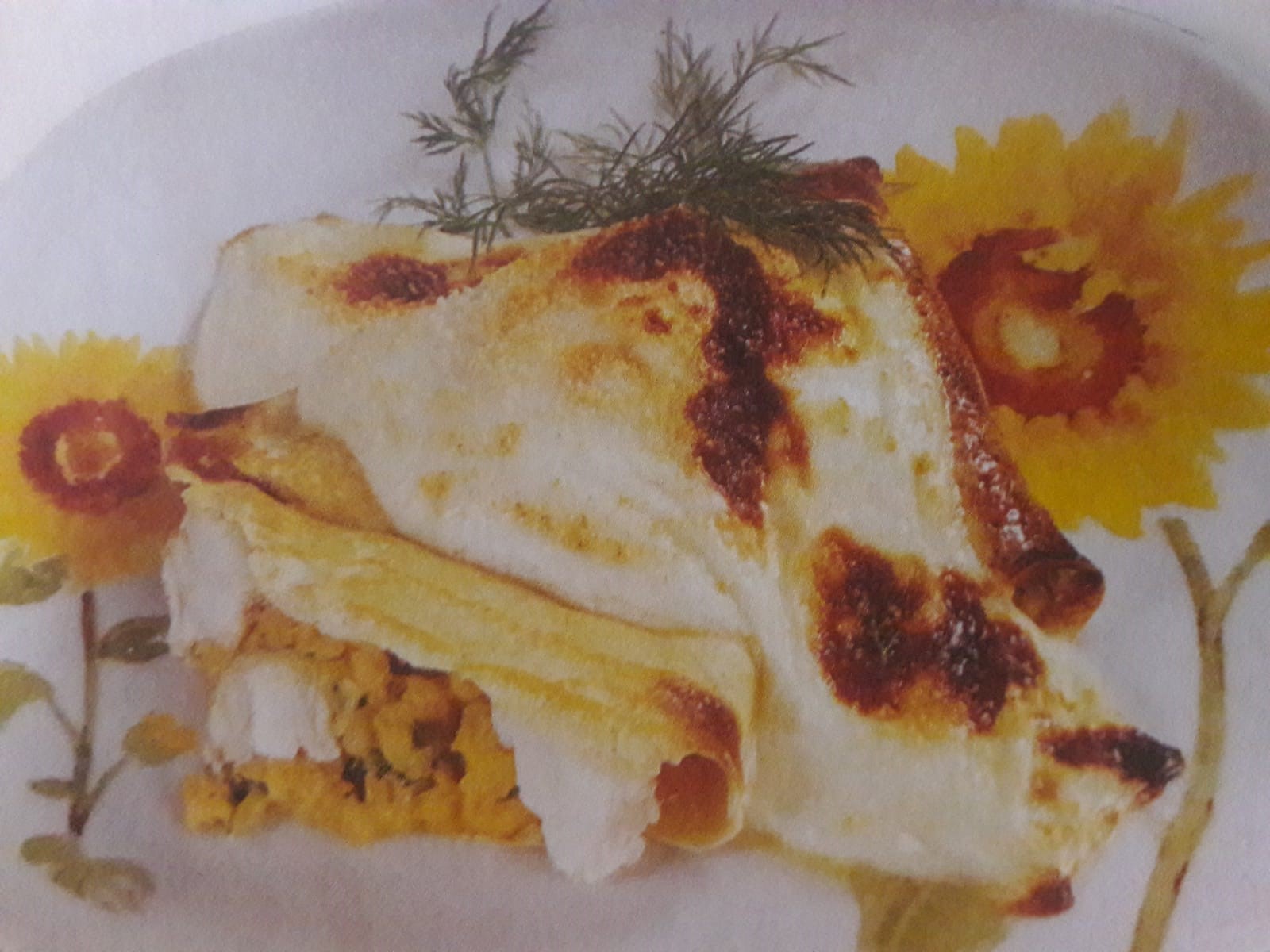 <p>Disponha os crepes num recipiente refractário, regue-os com o molho bechamel e polvilhe com o queijo ralado.</p>