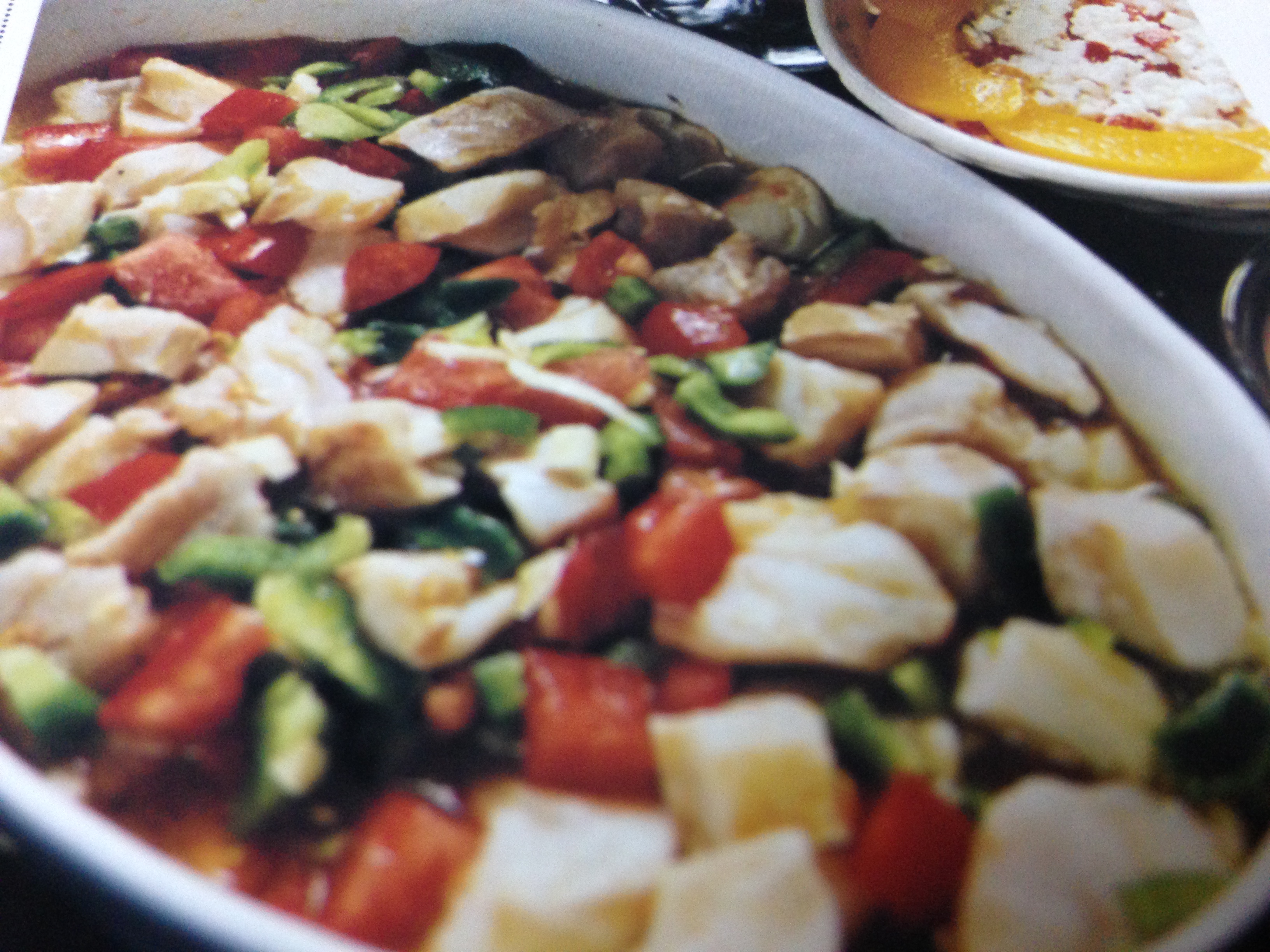 <p>Retire a pele e as espinhas ao bacalhau, bem demolhado, e corte-o, cuidadosamente, em pequeninos cubos.