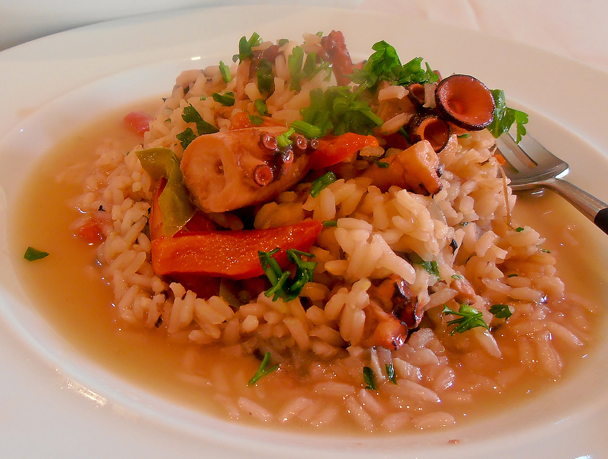 </p><p>Deixe cozer de forma a que o arroz fique bem solto. Verifique o sal e tempere com pimenta.</p>