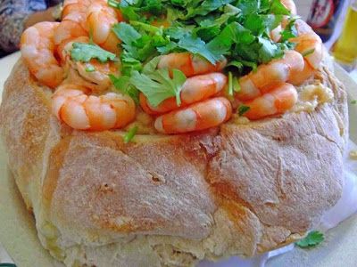 </p><p>Corte uma tampa em cada pão e escave o seu interior. Regue com o azeite e leve ao forno a 190ºC, por dez minutos. Polvilhe o preparado de camarão com os coentros que sobram picados e regue com o sumo do restante limão.