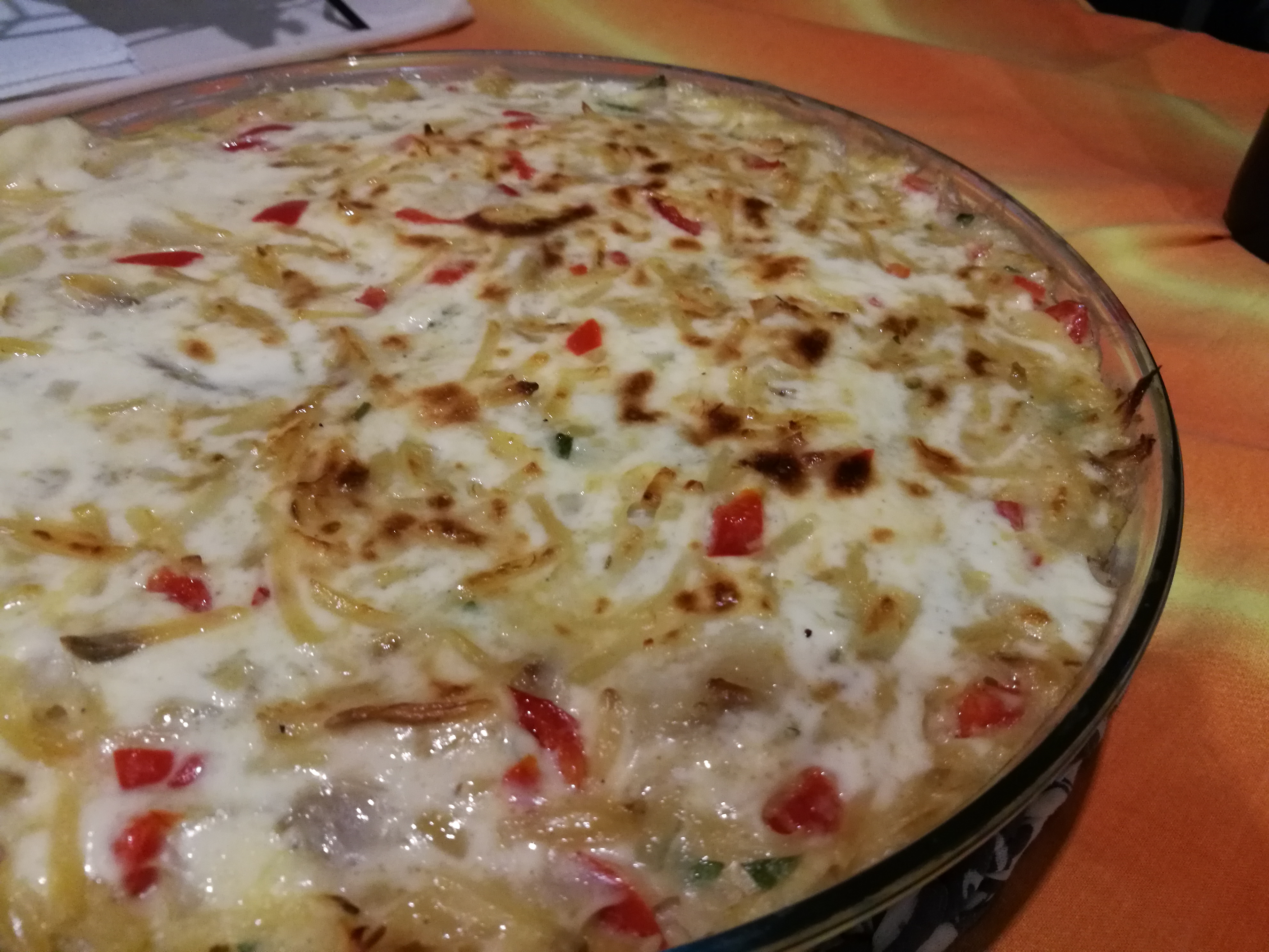 - Refogue cebola e alho na margarina, polvilhe com farinha, adicione leite quente, noz-moscada, sal e pimenta.
