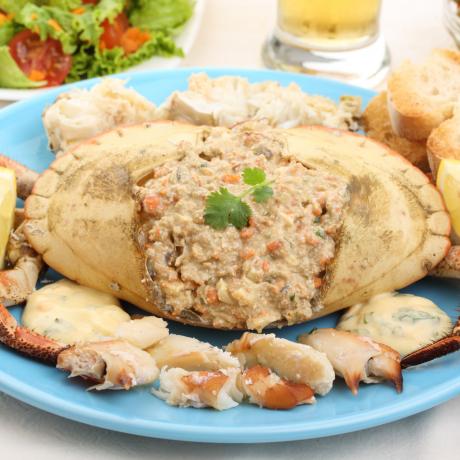 <p>Para a sapateira: Comece por preparar o tronco da carapaça. Limpe as películas folhadas (guelras) e a tripa do corpo e remova todo o recheio do interior da casca para dentro de uma tigela. Reserve as bocas. Na tigela, onde colocou o recheio, junte o miolo de pão esfarelado, a carne das patas e do corpo, a maionese, o ketchup, um ovo cozido ralado, e parte da salsa picada. Tempere com sal e pimenta e envolva tudo muito bem, até obter um preparado cremoso. Lave bem a casca da sapateira e coloque dentro o recheio. Espalhe por cima, o restante ovo cozido, salsa e os picles, tudo picado. Acompanhe com as bocas reservadas e finalize com gomos de limão.</p>