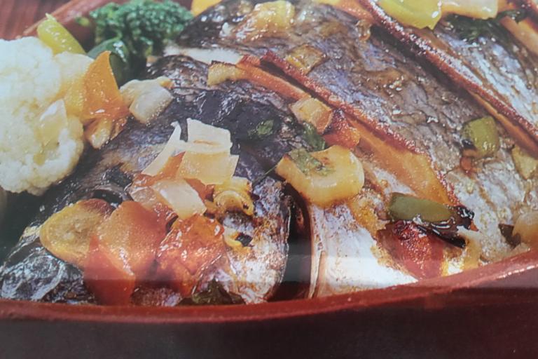 Bacalhau com molho de tomate e orégãos