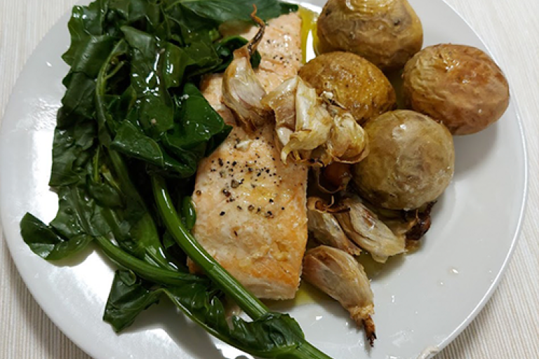 Filetes de Salmão à lagareiro com grelos