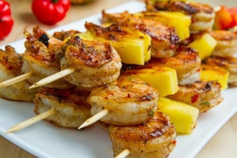 Espetadas de Camarão e Ananás