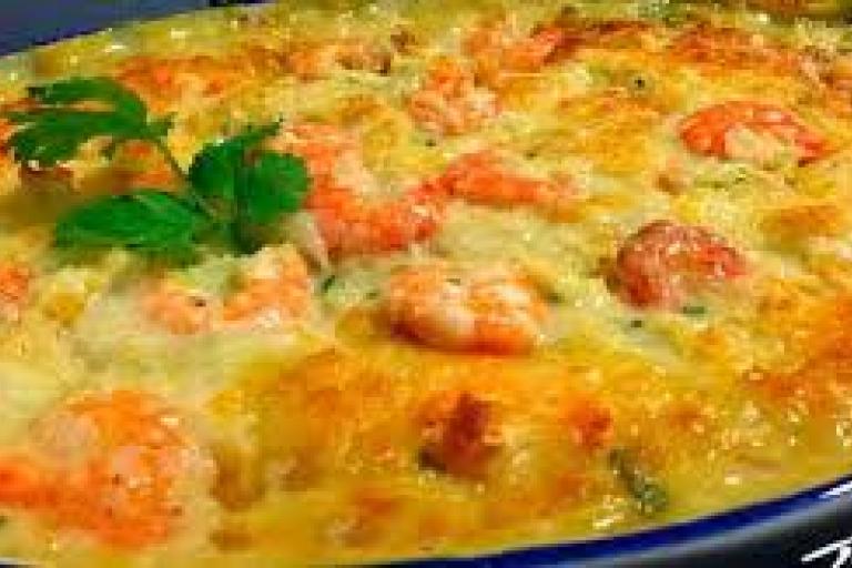 Bacalhau com Natas e Camarão