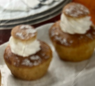 Pequenos bolos enxaropados com rum e recheados com chantilly.