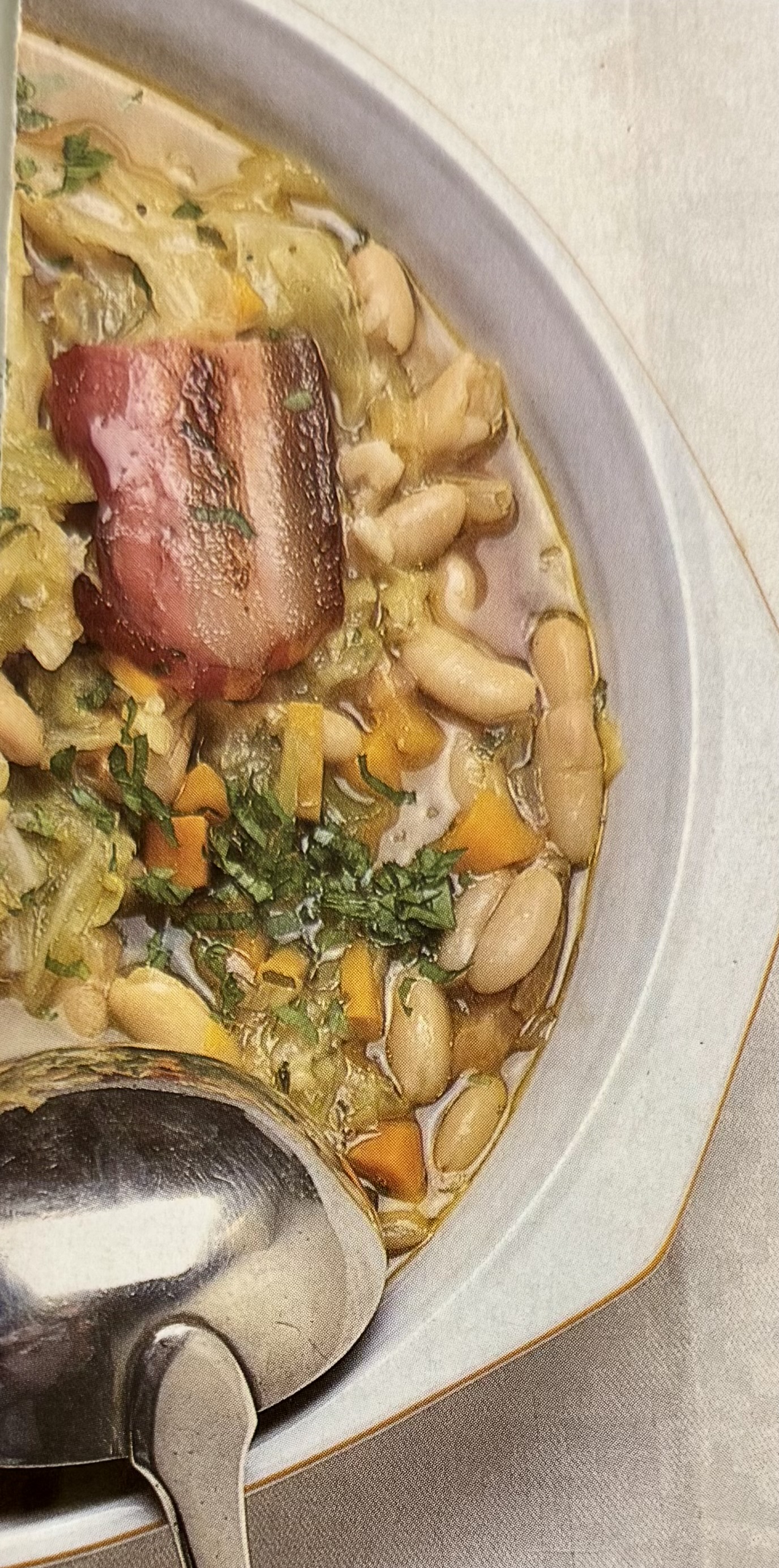 - Regue com a água ou o caldo de carne e tempere com a segurelha ou tomilho, a folha de louro, sal e pimenta. Cubra de novo e deixe ferver sobre lume brando durante hora e meia.