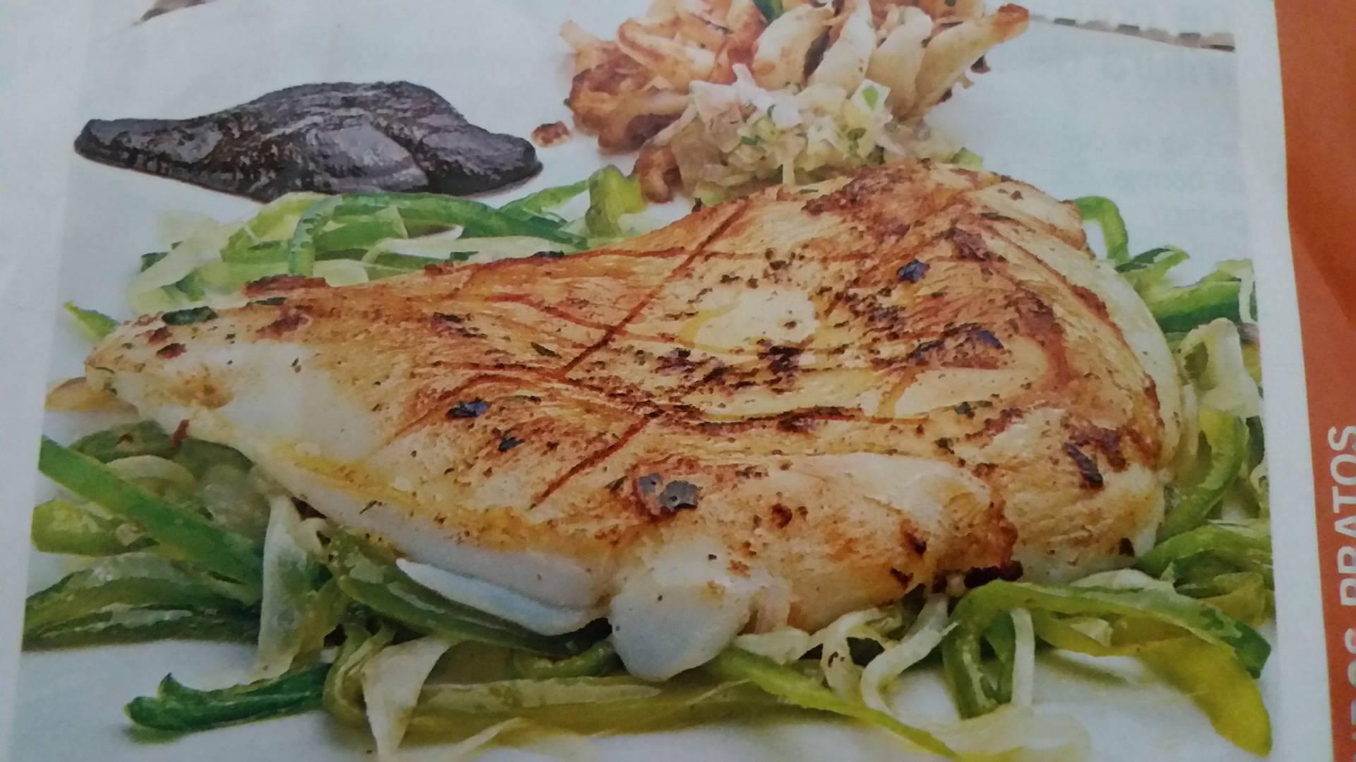 </p><p>Guarnição: Cozinhe a cebola e os pimentos em juliana no azete, com tampa, até ficarem macios.