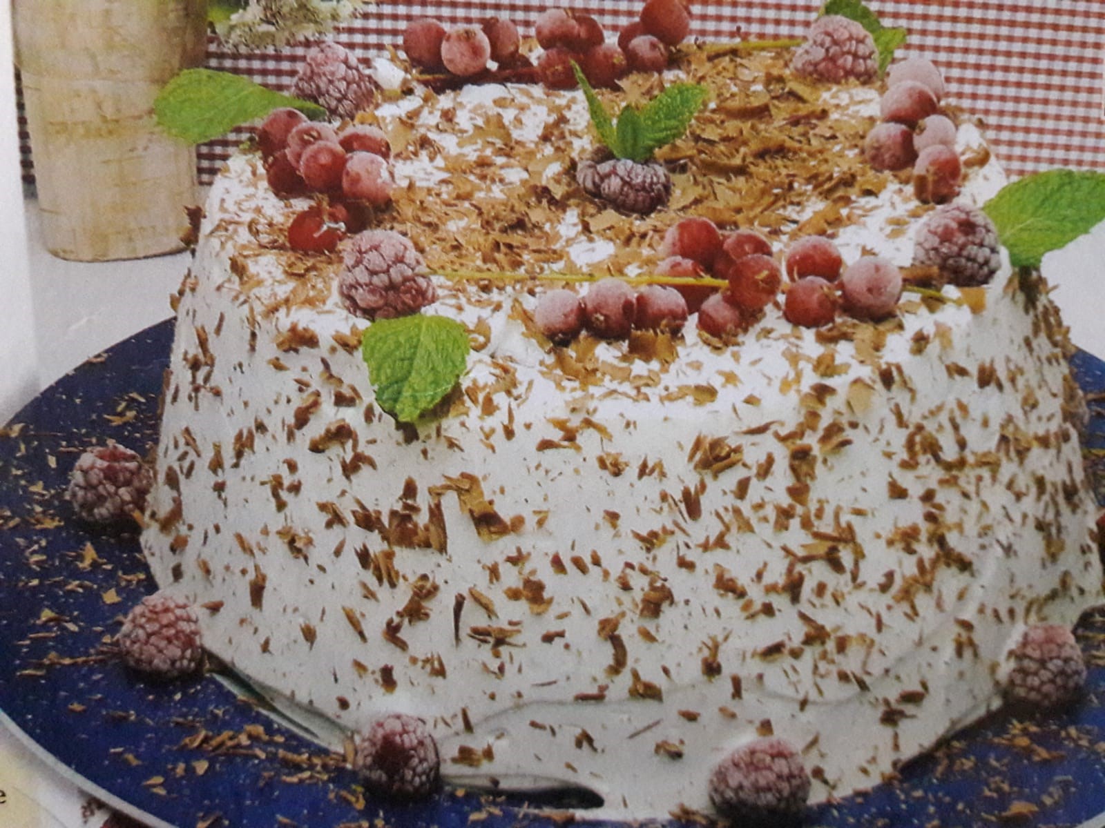</p><p>Barre toda a superfície com chantilly e decore com raspas da barra de chocolate, frutos silvestres e folhinhas de hortelã-pimenta.