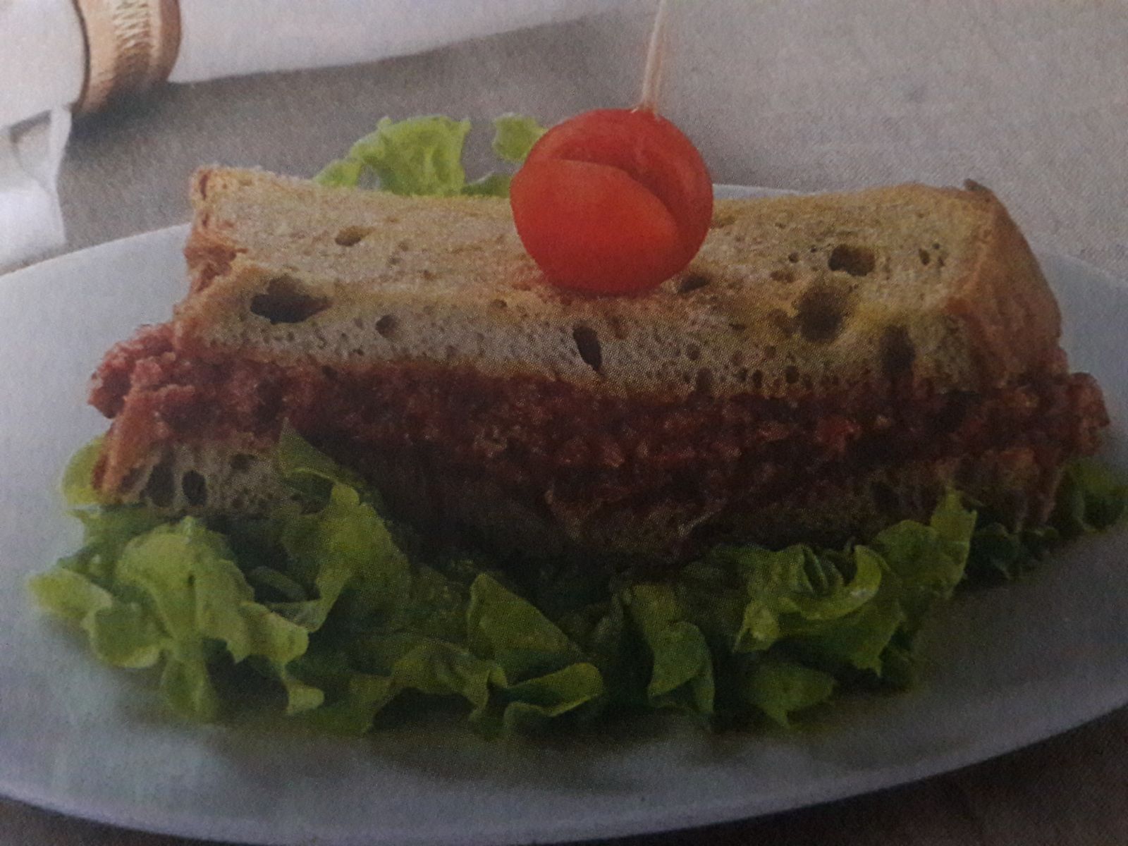 </p><p>Corte o pão em 8 fatias. Em 4 delas, espelhe a pasta de chouriço.
