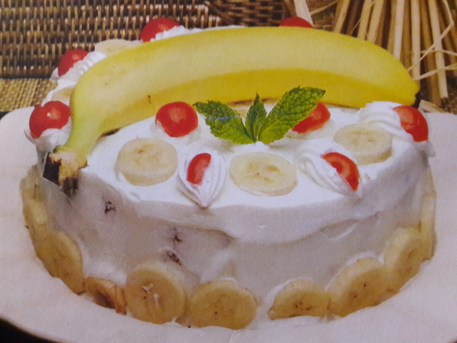 </p><p>Barre o bolo com chantilly, coloque 1 banana na superfície do bolo, já frio.