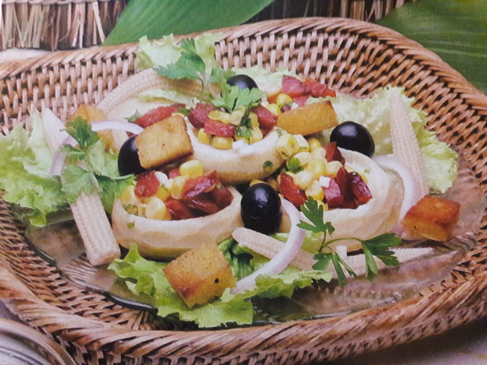 </p><p>Recheie os fundos de alcachofra com o milho e o salteado de chouriço.